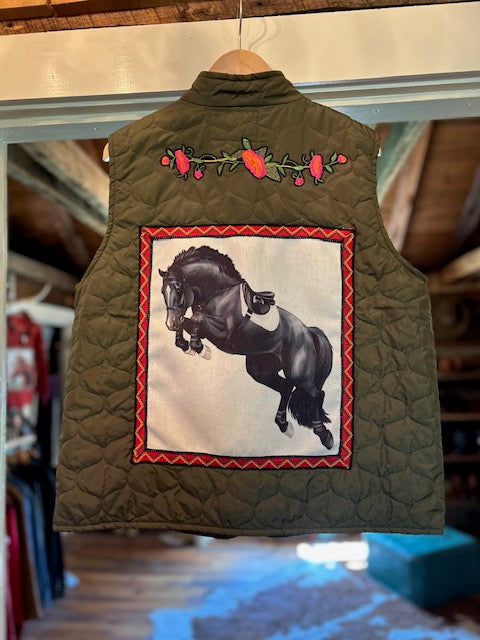 Quilted Hand-Embellished Army Green Vest